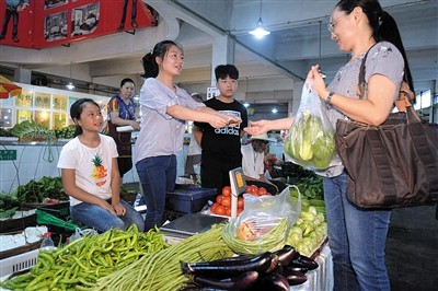 鄰近攤位的關系也要處好,上午蔬菜旺銷時,不能和臨近的攤位相互殺價。孩子們的大聲吆喝,吸引了不少顧客。他們已經(jīng)像個賣菜的“老把式”,有時為顧客多加個塑料袋,抑或少算個零頭,顧客走時會特別表示感謝。