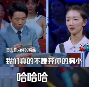 節(jié)目的某一環(huán)節(jié),為了回饋粉絲對于火星情報局的愛,作為情報局的郵遞員楊迪讀了一封粉絲寫給周冬雨的信,第一句話就直戳了周冬雨的要害:“首先作為你的粉絲,我們真的不嫌棄你的胸小,哈哈哈”,這個話題尷尬得讓人覺得楊迪就是要搞!事!情!