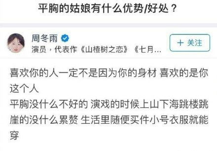 周冬雨被人當(dāng)面嘲笑胸小,她一句話回應(yīng)!
