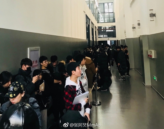 11月21日下午,中戲昌平校區體育館一層前廳被學生們圍得里三層外三層。研究生小文(化名)本想睡個午覺再來排隊買羽絨服,卻被朋友電話急召回來。