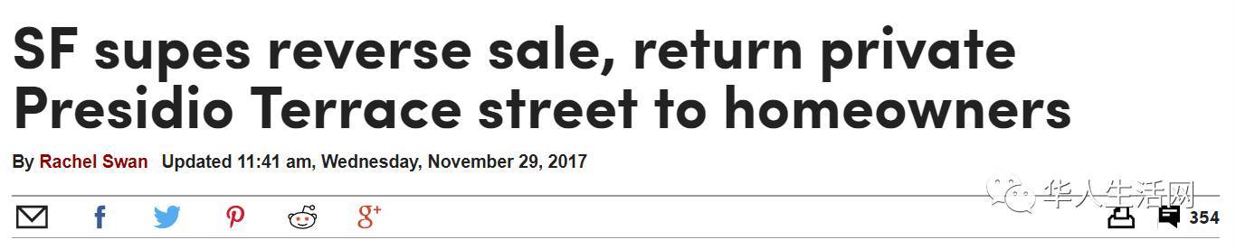 一對住在硅谷的年輕華裔夫婦以9萬元購得舊金山高尚住宅區太平洋崗的一條小街道Presidio Terrace,35棟超級豪宅業主試圖拿回街道所有權。舊金山市參事會昨日就事件舉行聽證會,市參事會最后以7對4通過,取消Presidio Terrace街道的買賣。