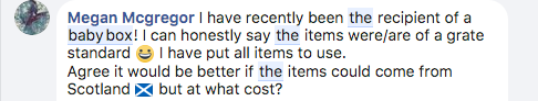 為此,蘇格蘭兒童事務大臣馬里·托德日前也邀請一些蘇格蘭企業,參與競標嬰兒盒子計劃第二年的供貨合約。他表示:“我們非常渴望在盒子中使用蘇格蘭商品,并讓蘇格蘭企業從中受益。這就是我們最近宣布他們可以競標明年盒子供貨合約的原因。”