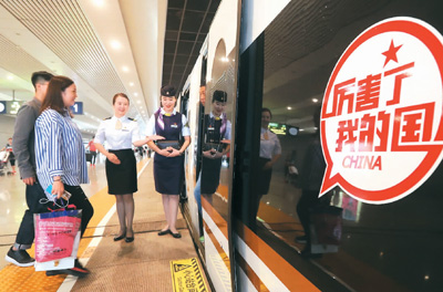 “厲害了,我的國!”在以350公里時速行進的“復興號”列車上,這6個紅色的大字格外醒目。