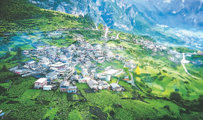圖為雨后清晨的扎尕那美麗景色。扎尕那位于甘肅省甘南藏族自治州迭部縣西北30余公里處的益哇鄉,藏語意為“石匣子”。