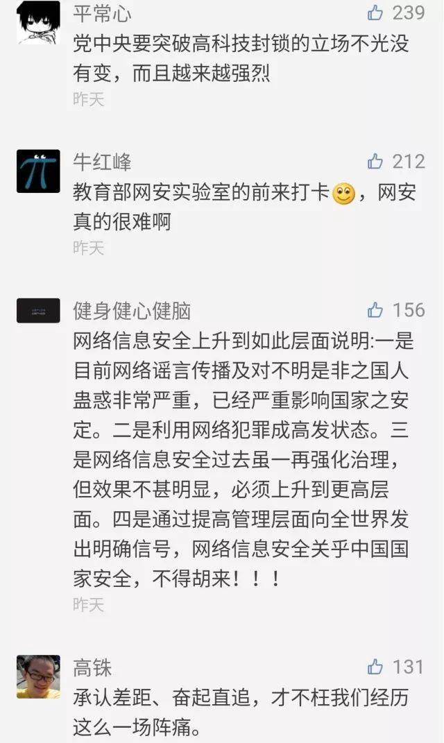 習近平總書記的重要講話從黨和國家事業全局出發,全面總結了黨的十八大以來我國網絡安全和信息化工作取得的歷史性成就、發生的歷史性變革,系統闡釋了網絡強國戰略思想的豐富內涵,科學回答了事關網信事業長遠發展的一系列重大理論和實踐問題,為把握信息革命歷史機遇、加強網絡安全和信息化工作、加快推進網絡強國建設明確了前進方向、提供了根本遵循,具有重大而深遠的意義。大家要認真學習領會,深入思考、聯系實際、深化認識,切實把思想和行動統一到習近平總書記重要講話精神上來。進一步提高政治站位,從黨長期執政和國家長治久安的高度,切實增強責任感和使命感,推動網絡安全和信息化工作再上新臺階。