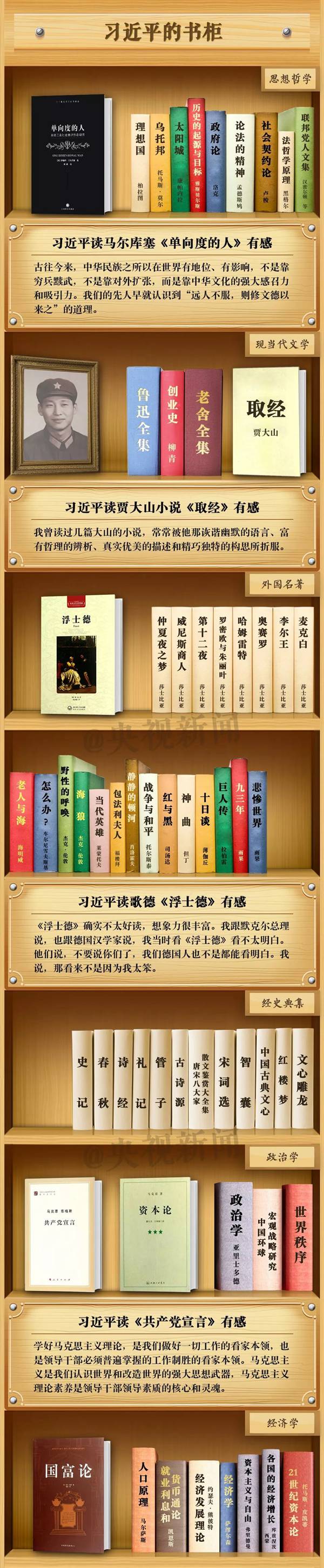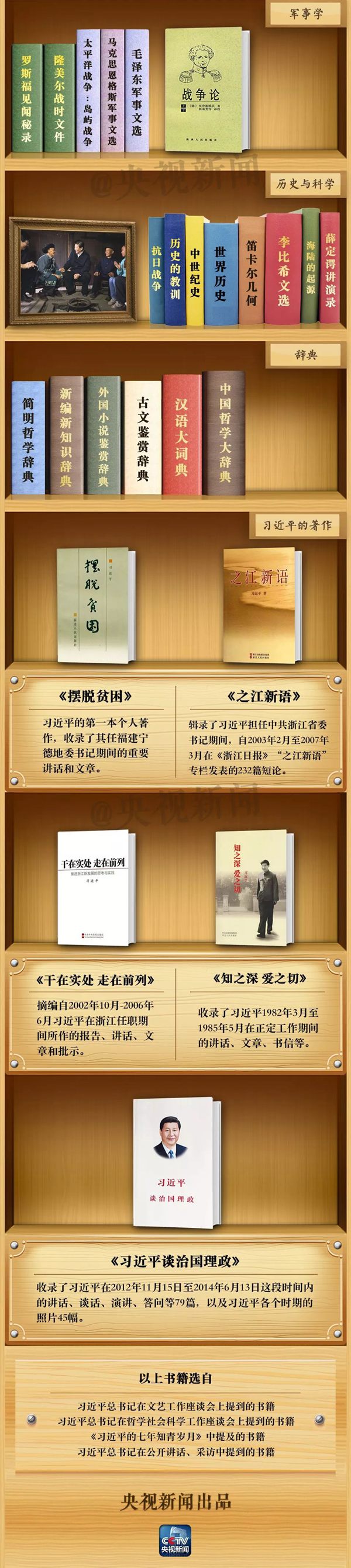 在這個節日,央視新聞定制了習近平總書記的“書柜”,來看看總書記的“書單”和讀書感悟吧。