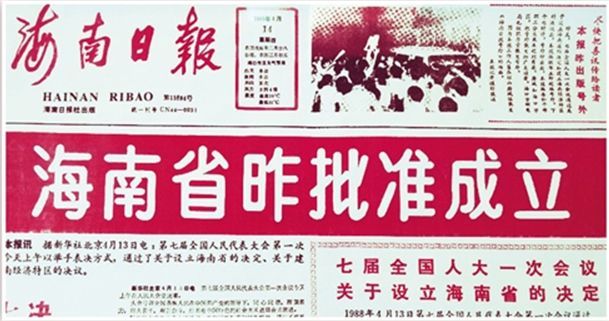 1988年4月14日,海南日報刊發海南省批準成立的新聞。本報記者 何 偉攝