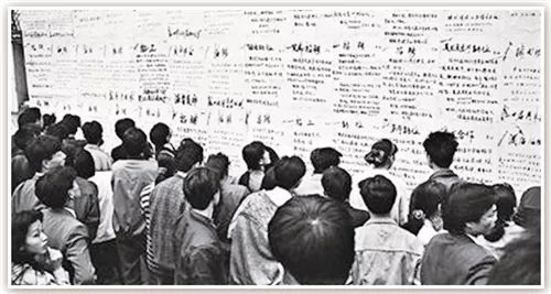 1988年,務工人員在海南省海口市三角池人才墻前找工作。黃一鳴攝