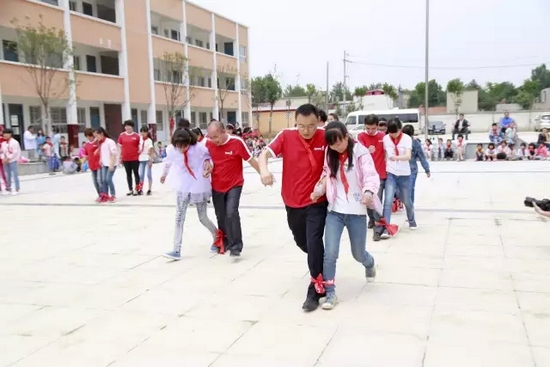 “加油,加油!”昨天,中牟黃店鎮中心小學的學生和志愿者們一起在廣播的音樂下玩著背靠背、兩人三足的游戲,大家玩得興高采烈。而這樣普通的游戲,這個學校的很多孩子是第一次玩兒。