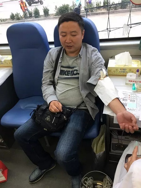 在附近的外賣小哥聽到有獻血活動,送完外賣后立刻趕來,獻完血后又繼續工作去了。