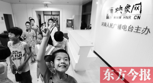 13日上午9時,河南廣電全媒體的小記者們來到映象網,剛走進大門,大家就被映象網的工作環境“鎮”住了,一排排嶄新的電腦,北面的墻上還在播放電視。
