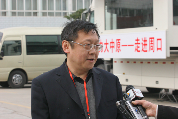 河南人民廣播電臺總編輯張大寶接受周口當?shù)孛襟w采訪