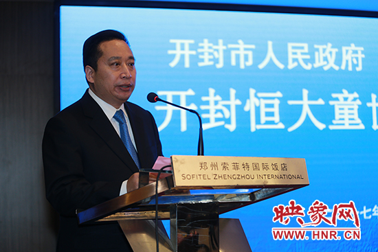 開(kāi)封市委書記吉炳偉在致辭中稱,在文化產(chǎn)業(yè)方面,開(kāi)封在全國(guó)率先提出了“文化+”理念,制定并實(shí)施了“文化+旅游”、“文化+城建”、“文化+會(huì)展”等10個(gè)專項(xiàng)行動(dòng)計(jì)劃,推進(jìn)完成了開(kāi)封鼓樓、開(kāi)封西湖、“一河兩街三秀”、“一節(jié)一會(huì)一論壇一賽事”等一批“文化+”重點(diǎn)產(chǎn)業(yè)項(xiàng)目,通過(guò)新的聯(lián)接、新的重組、新的融合,激活開(kāi)封沉睡的文化基因,讓開(kāi)封得天獨(dú)厚的文化資源轉(zhuǎn)化成項(xiàng)目、轉(zhuǎn)化成產(chǎn)業(yè)、轉(zhuǎn)化成促進(jìn)經(jīng)濟(jì)社會(huì)發(fā)展的新動(dòng)力。“開(kāi)封恒大童世界項(xiàng)目建成后,將成為集文化旅游、文化創(chuàng)意、生態(tài)休閑、商業(yè)服務(wù)為一體的大型綜合體項(xiàng)目,每年將帶動(dòng)周邊旅游人數(shù)增長(zhǎng)1500萬(wàn)人次。”吉炳偉稱,這將是開(kāi)封自建國(guó)以來(lái)最大的文化項(xiàng)目,是推進(jìn)鄭汴一體化深度發(fā)展的重大項(xiàng)目,同時(shí)也是河南省加快構(gòu)筑文化高地、開(kāi)封加快構(gòu)筑文化高地示范區(qū)的重大項(xiàng)目,更是全面提速開(kāi)封經(jīng)濟(jì)社會(huì)發(fā)展的重大項(xiàng)目,未來(lái)發(fā)展前景不可限量,必將為河南省乃至國(guó)家中部地區(qū)的文化旅游產(chǎn)業(yè)增添新的動(dòng)力和活力。