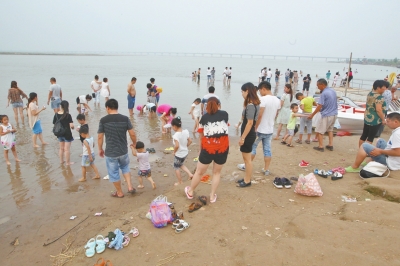 昨日下午,鄭州花園路黃河游覽區,一對父子在河中戲水被卷走,救援兩小時無果。事故發生后,原本在河邊戲水的上百男女,仍淡定玩耍。