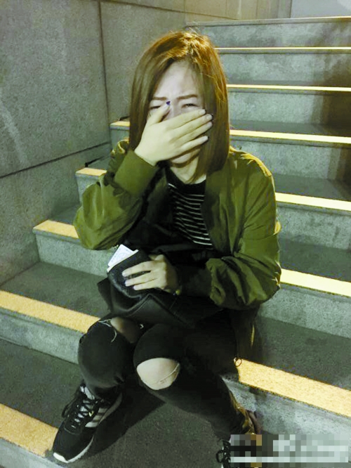 在微博配圖中,撿到錢包的環衛工穿著“站區環衛”黃色馬甲,手中提著掃帚和一個裝著塑料瓶的塑料袋,另一張圖則是網友“蘇粉mpp”坐在西廣場臺階上捂臉哭泣的照片。