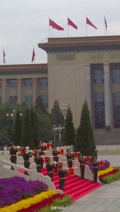 新華網北京9月30日電 據新華社“新華視點”微博報道,今天是國家設立的首個烈士紀念日,正值新中國成立65周年之際。上午,習近平、李克強、張德江、俞正聲、劉云山、王岐山、張高麗等來到天安門廣場,與首都各界代表一起,出席向人民英雄敬獻花籃儀式。