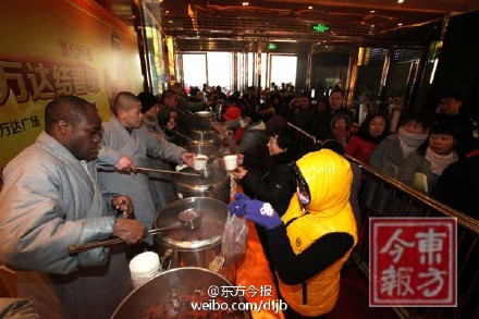 今早9點,大學路二七萬達,聚集上千人,少林寺免費施粥,三天熬制兩萬份。不少市民早上7點來排隊,提著餐盒保溫桶大碗,現發現喝。大早上一碗熱乎乎的臘八粥下肚,透心暖。現場人員還在源源不斷增加中。今天你喝臘八粥了嗎?