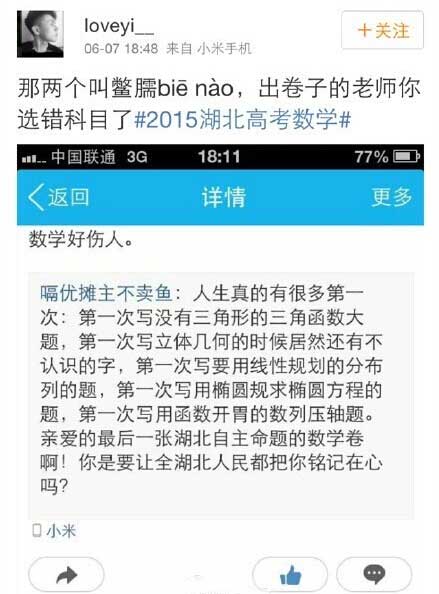 昨天,湖北考生炸了!表示從沒做過如此厚顏無恥的數(shù)學(xué)題…“寫立體幾何,居然還有不認識的字”,據(jù)說那個字叫鱉臑biē nào,來自《九章算術(shù)》。據(jù)百度百科:斜解立方,得兩壍堵。斜解壍堵,其一為陽馬,一為鱉臑。考出了文言文的感覺!老師別鬧!