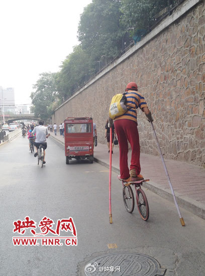腳踩輪子,你以為就是哪吒?8月23日,鄭州中原路隧道西向東方向,一名約40多歲的背包男腳踏兩輪滑輪車,雙手各拿一根2米多長的滑桿,動(dòng)作嫻熟地下坡上坡停車前行。市民感嘆:簡直像雜技,就是太危險(xiǎn)。