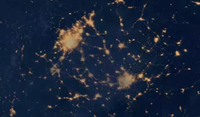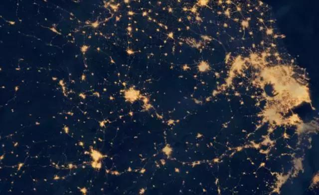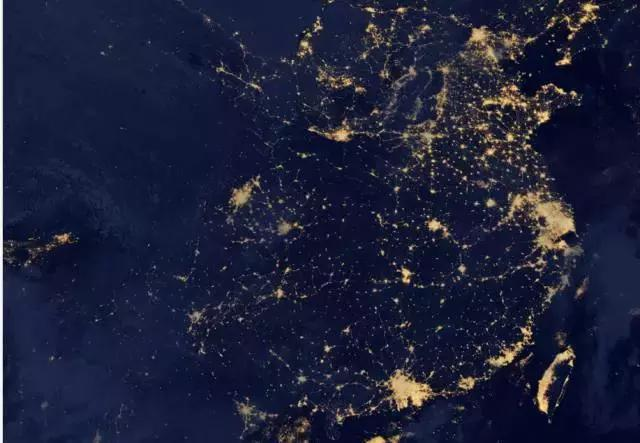 這份圖上,最閃亮的兩部分區域分別是珠三角和長三角,這也是中國目前最為成熟的兩大城市群,而作為傳統三大城市群之一的京津冀除了北京、天津之外,其他都呈散點排列,至于新晉的中原等城市群,規模上還不明顯。
