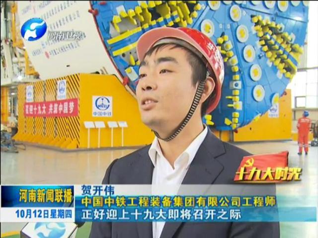 中國(guó)共產(chǎn)黨第十九次全國(guó)代表大會(huì)即將召開,今天起,河南新聞聯(lián)播推出《十九大時(shí)光》專欄,和您一起走進(jìn)革命老區(qū)、田間地頭、工礦企業(yè)、街道社區(qū),傾聽基層干部群眾愛黨愛國(guó)的熱切心聲,感受人們建設(shè)出彩中原的火熱場(chǎng)景,聚焦十九大召開的歷史性時(shí)刻,共度這段特殊而又美好的時(shí)光。今天播出第一集《中鐵裝備:用更優(yōu)質(zhì)的中國(guó)制造喜迎十九大》。