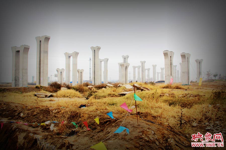 映象網訊(記者 王濤 巫曉 文/圖)“開放的工地,霧霾再厚重些,配以幾聲鳥鳴,或幾只尋食的烏鴉,這就是活生生的恐怖片,或者科幻片的鏡頭,在展示地球文明消失后的凄涼……”11月24日,有網友爆料稱,位于鄭州市南四環的京廣快速路南延工程已經停工數月,現場幾百根橋墩已經架起,場面甚是“震撼”。