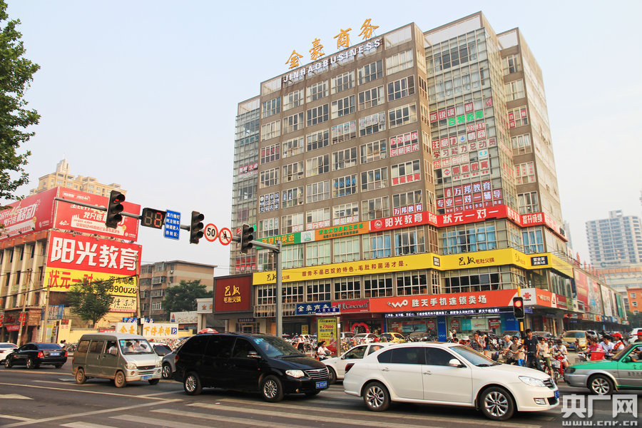 2015年5月26日,河南省安陽市,人民大道與紅旗路交叉口的一棟商業樓的窗戶上掛滿了輔導班的廣告,從小學、中學的學習輔導到海外留學的培訓,甚至還有幾家“培養情商”、“開發腦力”的新型輔導班廣告。這棟商業樓儼然變成了一棟輔導班大樓,市民戲稱輔導班也有了“一條龍”式的服務。