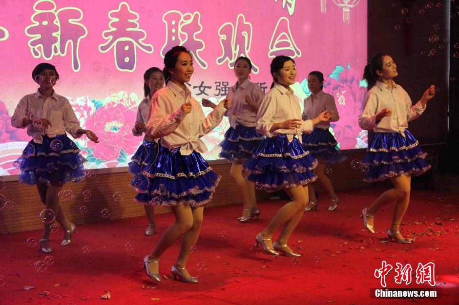22日,適逢元宵佳節,一場由民警和戒毒學員共同演繹的聯歡會在陜西省女強制隔離戒毒所舉行,通過歌舞、相聲、二人轉、小品等表演形式,鼓勵戒毒人員在新的一年,繼續增強戒毒意愿和決心,早日戒除毒癮回歸社會。圖為民警表演歌伴舞。 張一辰 攝