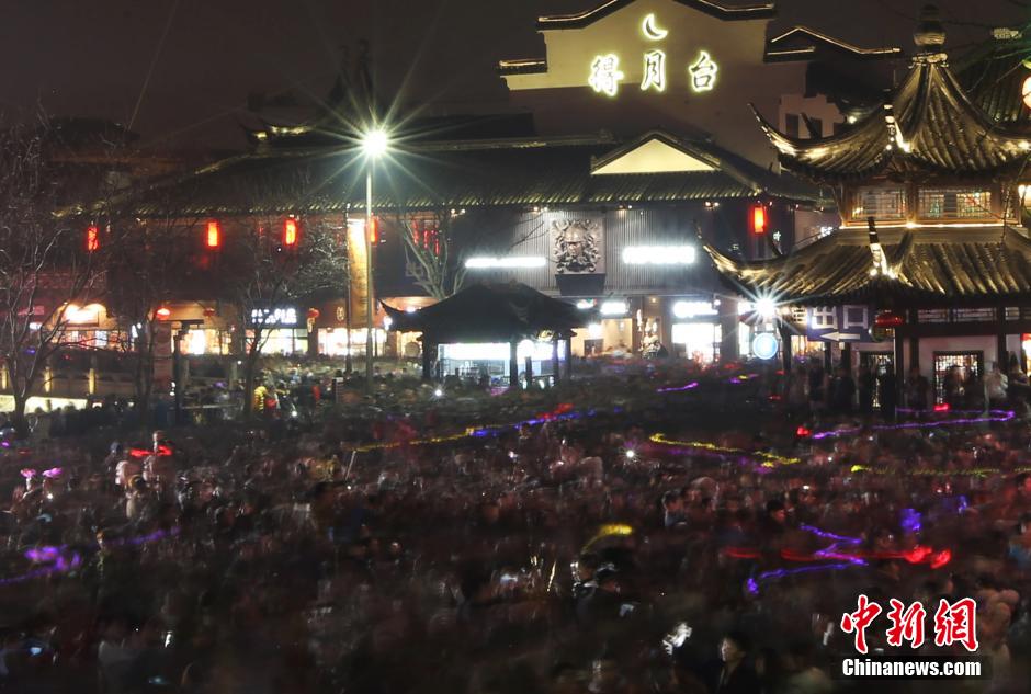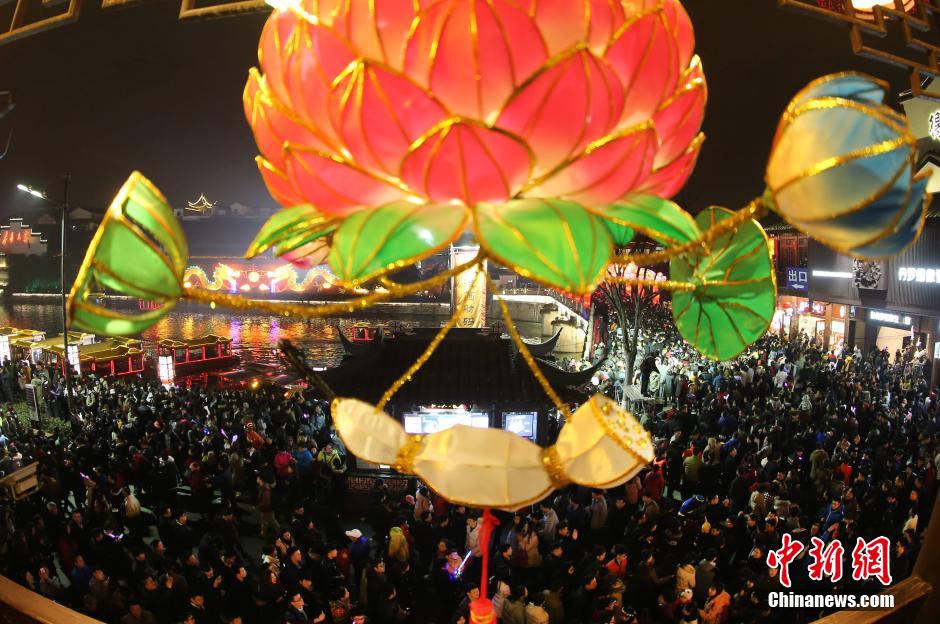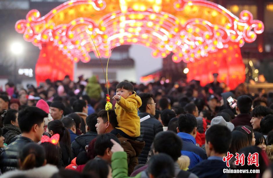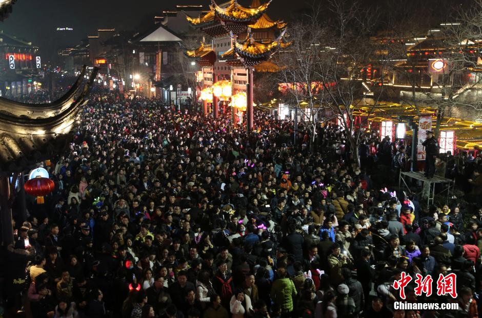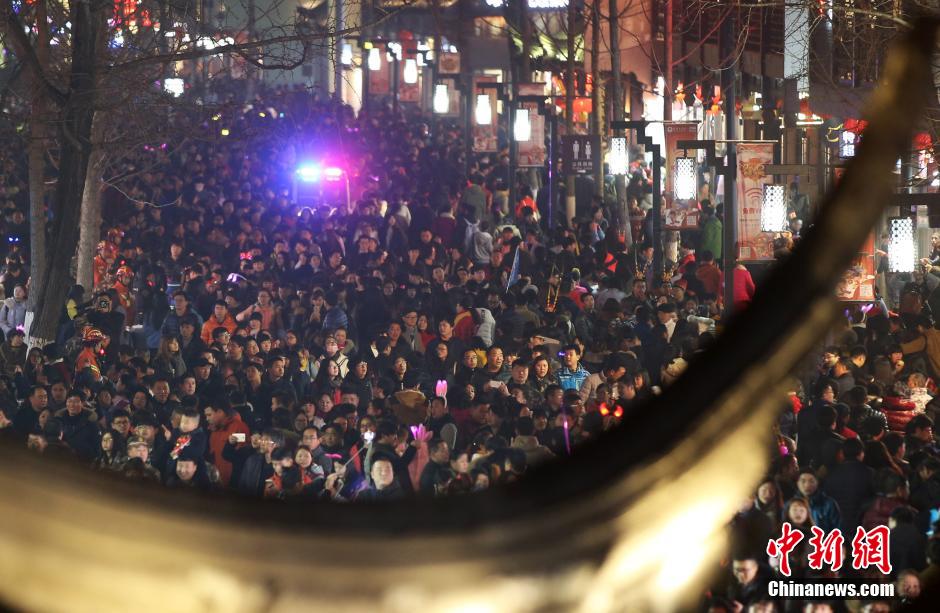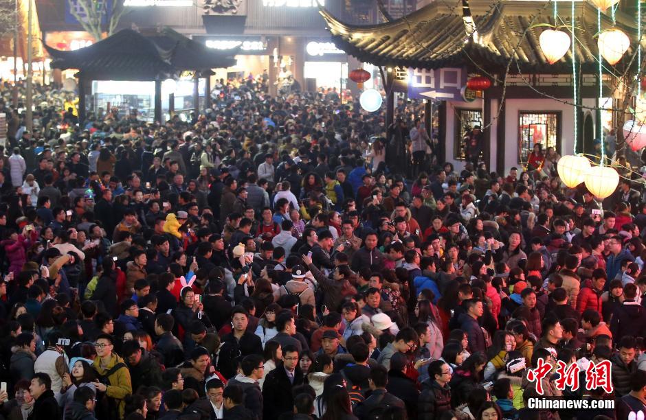 2月22日晚,南京夫子廟廣場上人山人海。當日是元宵節,數十萬市民和游客涌進南京夫子廟景區內欣賞秦淮燈會,瞬間開啟“人從眾”模式。秦淮燈會又稱“金陵燈會”,是流傳于南京地區的特色民俗文化活動,主要在每年的春節至元宵節期間舉行。 中新社記者 泱波 攝