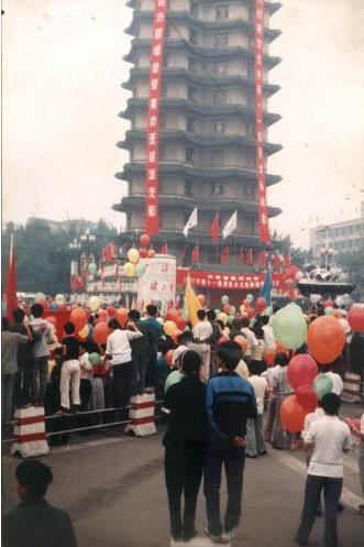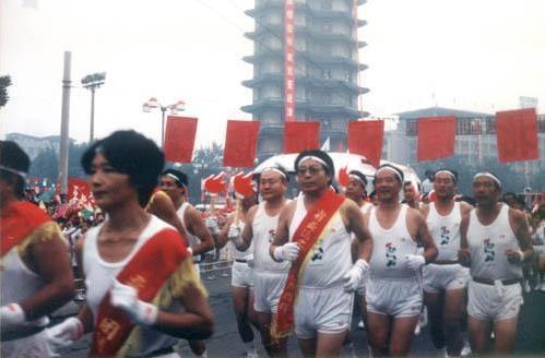 火炬從二七廣場開始傳遞。“李寧”運(yùn)動(dòng)服、“健力寶”飲料、熊貓“盼盼”成為當(dāng)時(shí)的大亮點(diǎn)。(攝影 | 尹人)