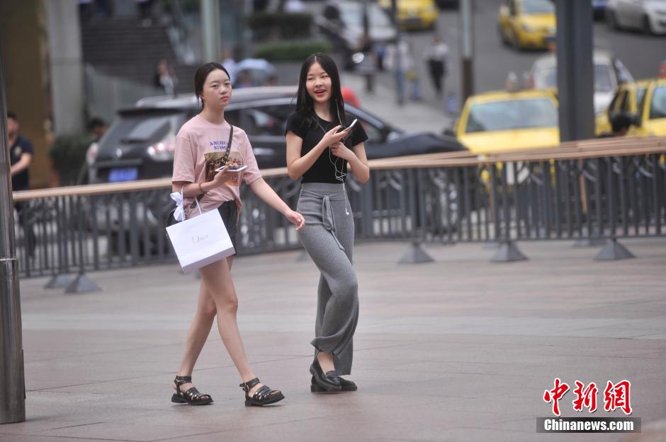 4月27日,重慶室外最高氣溫直逼30℃,觀音橋步行街上不少市民穿涼裝出行。陳超 攝