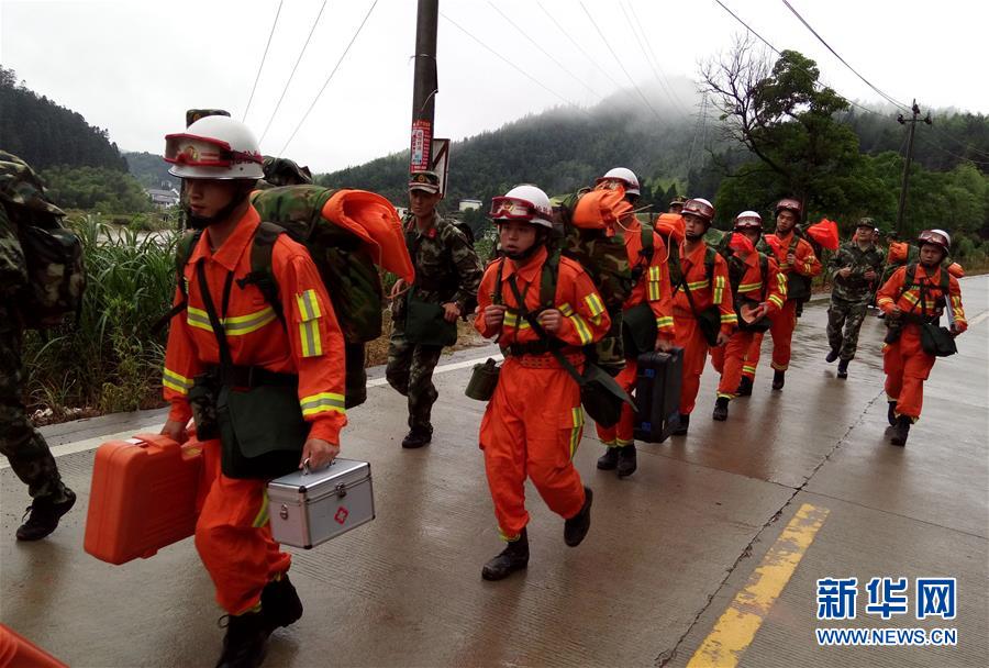 5月8日,由于當地部分道路坍塌,武警水電二總隊六支隊官兵徒步馳援福建泰寧山體滑坡現場。