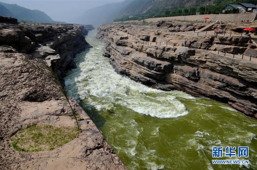 5月10日,黃河壺口瀑布十里龍槽水流明顯變清。自4月下旬以來,受上游降雨偏少和黃河干流來水量減少影響,河水流速變緩,泥沙沉淀,位于山西吉縣和陜西宜川縣交界的壺口瀑布水色明顯變清,呈現出別于日常的“清流飛瀑”景觀。新華社發(呂桂明 攝)