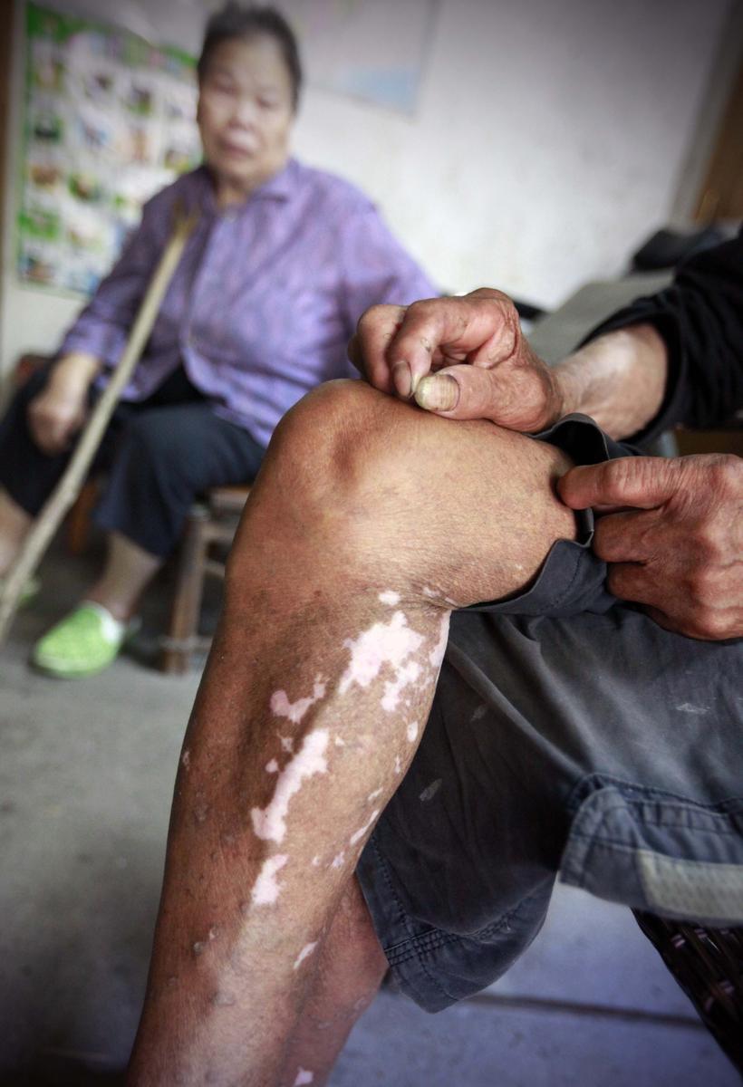 當了多年的漁民模特,整天也水打交道。黃全德說,他的腳已脫了三層皮。