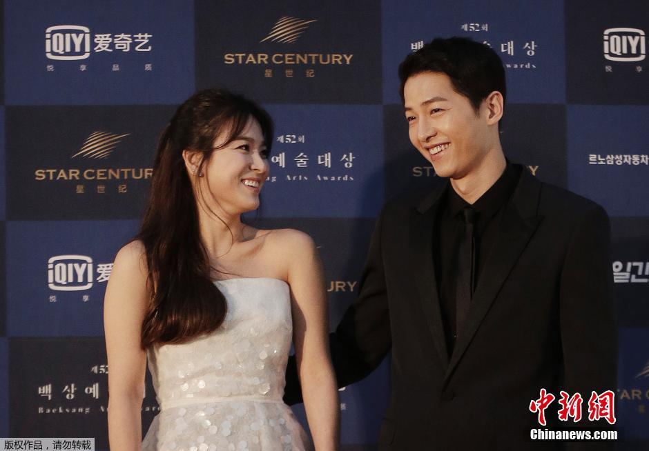 當地時間6月3日,韓國年度電視、電影盛事“第52屆百想藝術大獎”在韓國首爾的慶熙大學登場,宋仲基和宋慧喬憑借《太陽的后裔》一舉拿下人氣大獎。宋仲基更在臺上感動告白搭檔宋慧喬“謝謝在我身邊的宋慧喬”。