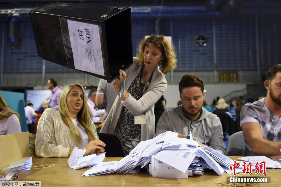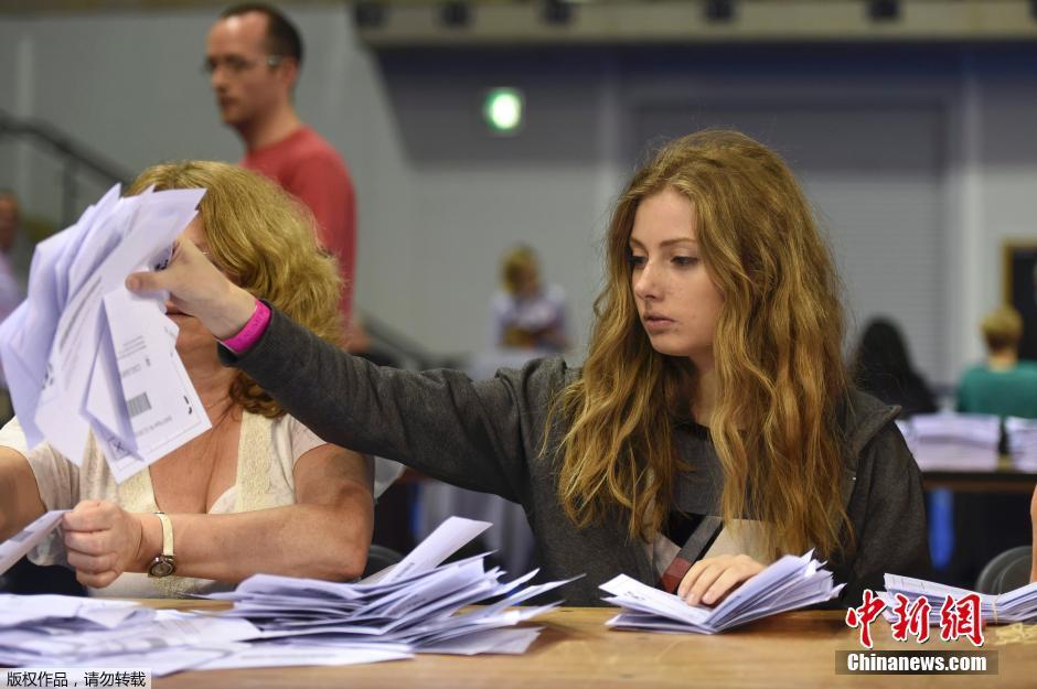 當地時間2016年6月23日,英國脫歐公投拉開帷幕,各地計票工作進行中。