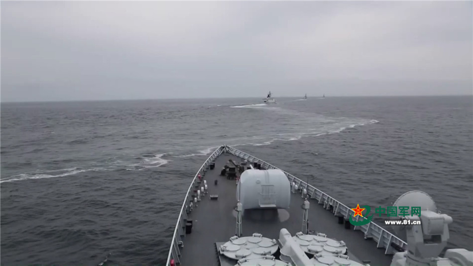 紅方艦艇編隊指揮艦合肥艦上,急促的警報聲驟然響起,“報告,發現空中目標向我飛近!”合肥艦駕駛室,某驅逐艦支隊參謀長鐘博文沉著冷靜指揮,紅方編隊迅速采取反干擾措施,雷達、通信等戰位重新恢復工作,并在空中預警兵力的協同下,合肥艦及時偵獲藍軍行動。圖為艦艇編隊。