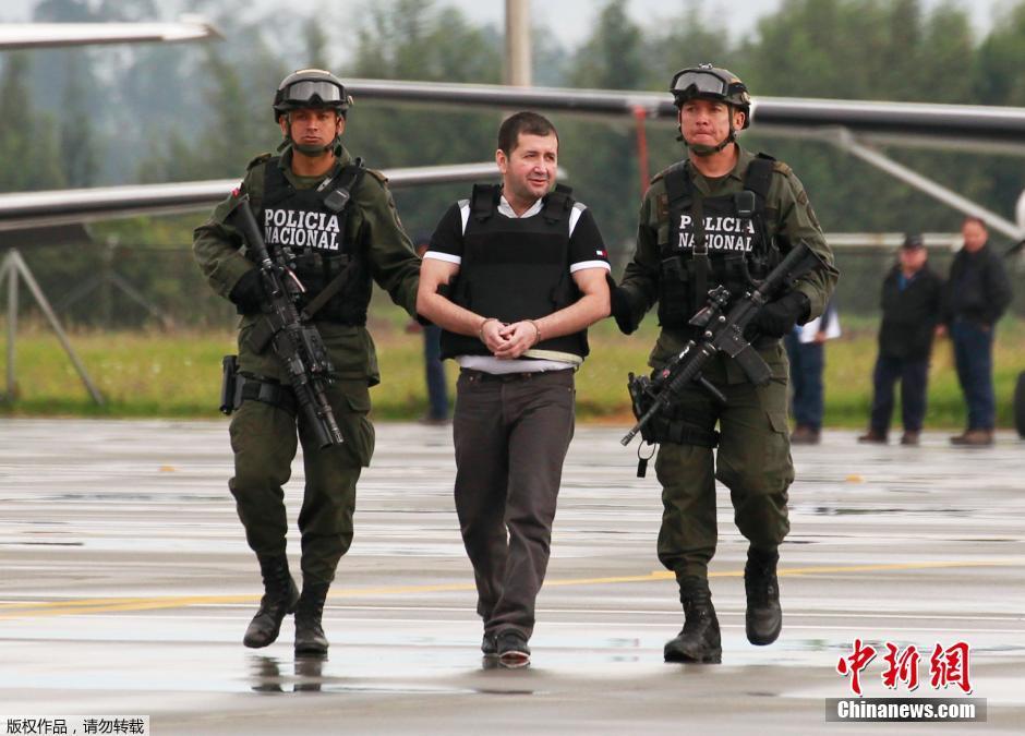 7月28日消息,哥倫比亞大毒梟丹尼爾·巴雷拉因在全世界販賣數百噸可卡因被判35年監禁。巴雷拉曾世界最大毒梟之一為了掩蓋身份便于跑路,他多次整容,并毀掉了指紋和部分掌紋,簡便如此煞費苦心依然被警方拘捕。圖為2013年7月9日巴拉雷在機場被引渡至美國波哥大。