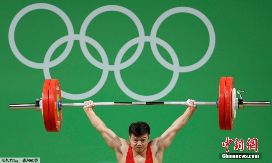 當地時間8月7日,里約奧運會男子舉重56公斤級比賽舉行,北京奧運會該項目冠軍中國選手龍清泉破世界紀錄再次摘金,為中國代表團再添一枚金牌。圖為龍清泉在抓舉比賽中。