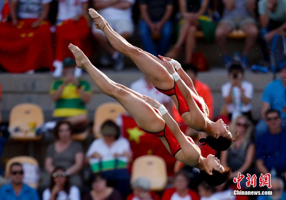 當地時間8月9日,2016里約奧運跳水女子雙人十米臺,中國選手陳若琳/劉惠瑕以354.00分獲得冠軍。這也是陳若琳收獲的第五枚奧運金牌。中新網記者 杜洋 攝