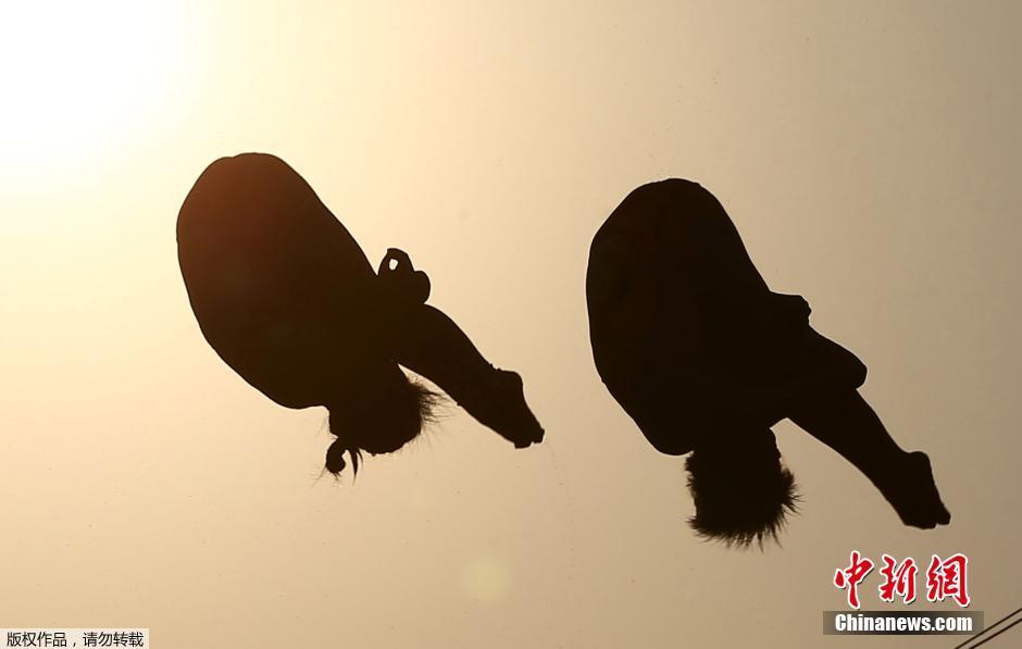當地時間8月9日,2016里約奧運跳水女子雙人十米臺,中國選手陳若琳/劉惠瑕以354.00分獲得冠軍。圖為中國選手陳若琳/劉惠瑕在賽前熱身。