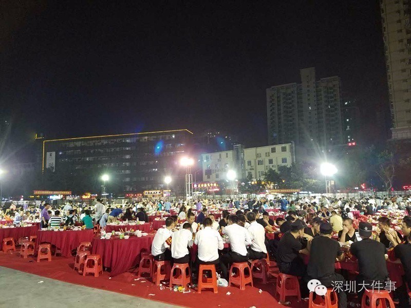 去年,水貝村完成了整體拆遷,因此,這次的盆菜宴,是在水貝舊城的廢墟上騰出的一塊空地上進行。