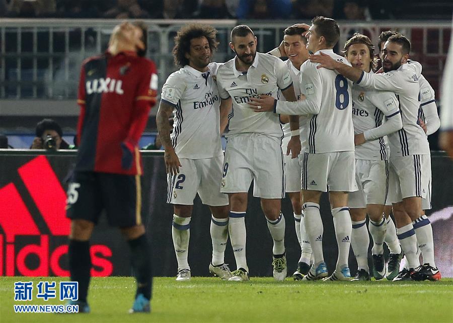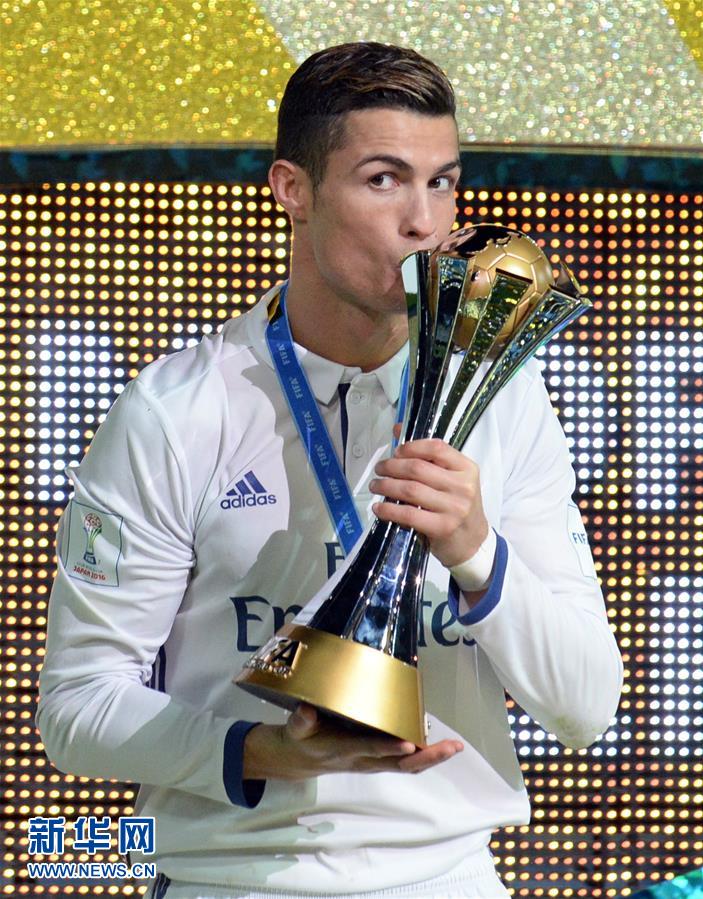 12月18日,皇家馬德里隊(duì)球員克里斯蒂亞諾·羅納爾多在本場比賽中上演“帽子戲法”,獲得世俱杯金球獎。新華社記者馬平攝