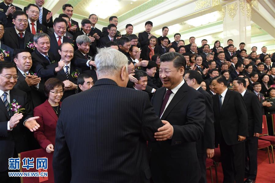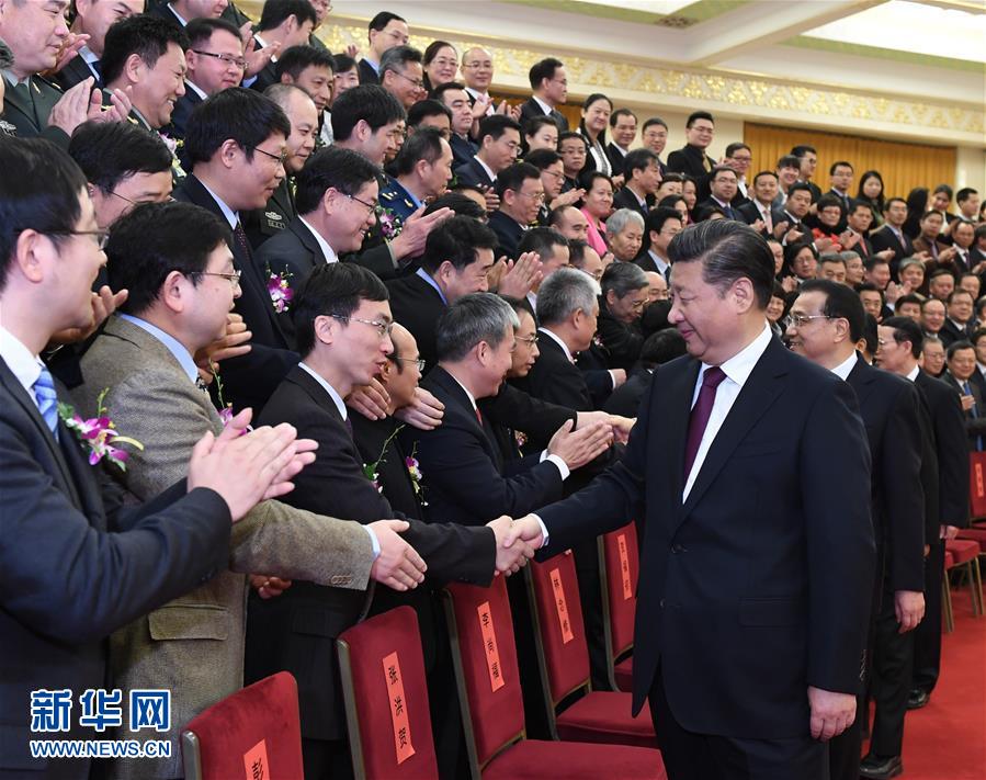 1月9日,2016年度國家科學技術獎勵大會在北京人民大會堂隆重舉行。黨和國家領導人習近平、李克強、劉云山、張高麗等出席大會并為獲獎代表頒發獎勵證書。會前,習近平等黨和國家領導人會見獲獎代表。新華社記者 李學仁 攝