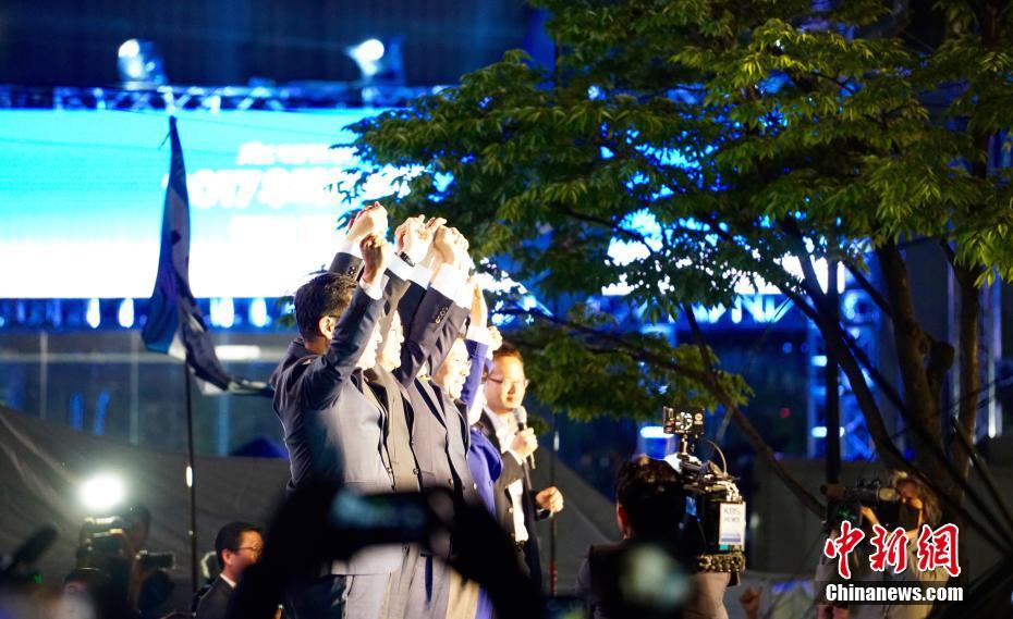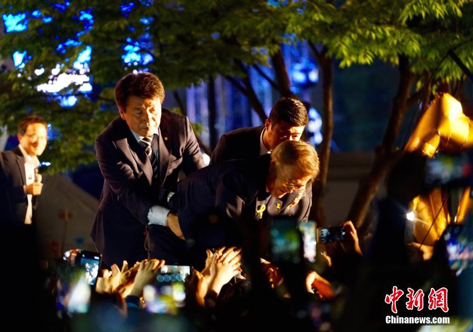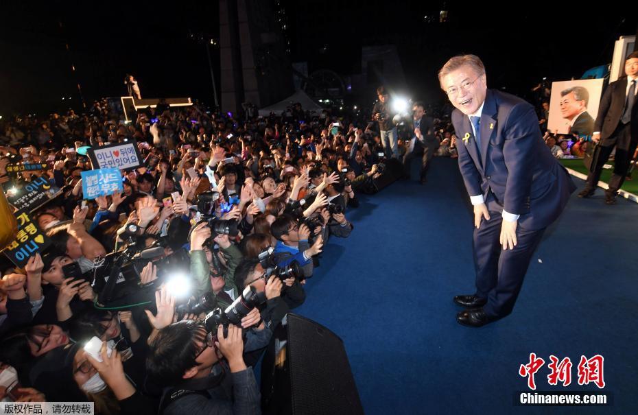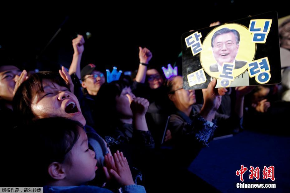 當地時間5月9日深夜,韓國第19屆總統選舉共同民主黨候選人文在寅及其競選團隊現身首爾光化門廣場,發表“勝選演說”,與支持民眾握手慶祝。據出口民調顯示,文在寅在當日進行的大選投票中以41.4%的支持率絕對優勢勝選。在選舉管理委員會公布的大部分開票結果中,文在寅得票率也遙遙領先,提前鎖定勝局。