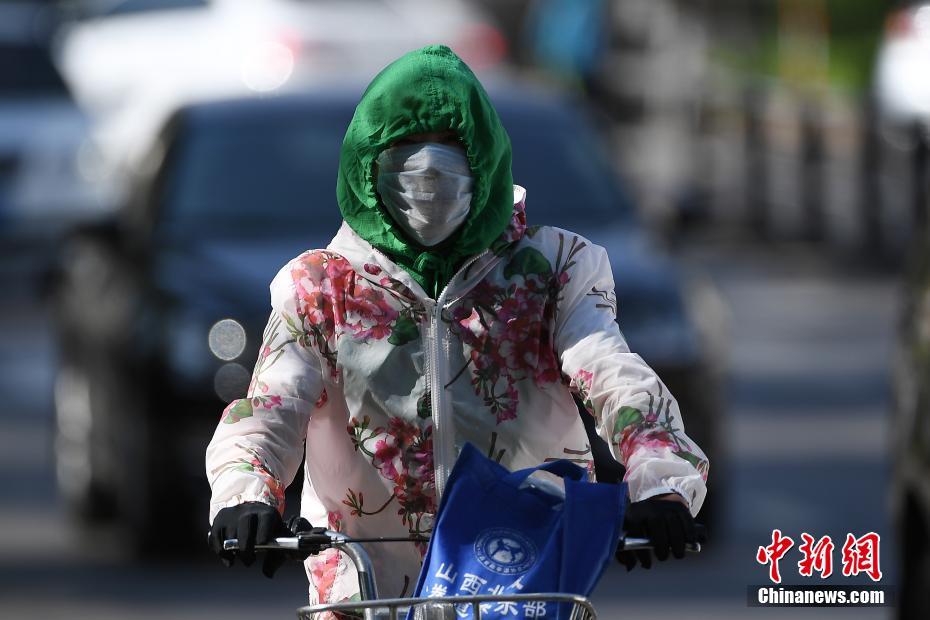 5月17日,山西太原,民眾在烈日下“全副武裝”出行。據(jù)中央氣象臺消息,17日-19日,北方多地將遭遇今年以來首次大范圍高溫天氣,涉及京津冀、內(nèi)蒙古等7省市區(qū),其中18日高溫范圍最廣、強度最大,內(nèi)蒙古東部偏南地區(qū)局地更有可能出現(xiàn)38-40℃的最高氣溫。武俊杰 攝