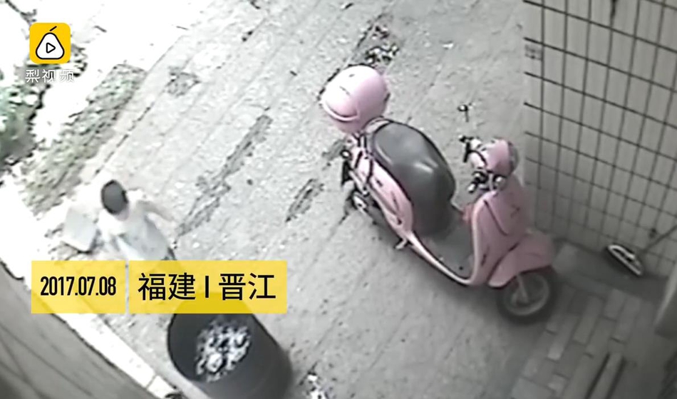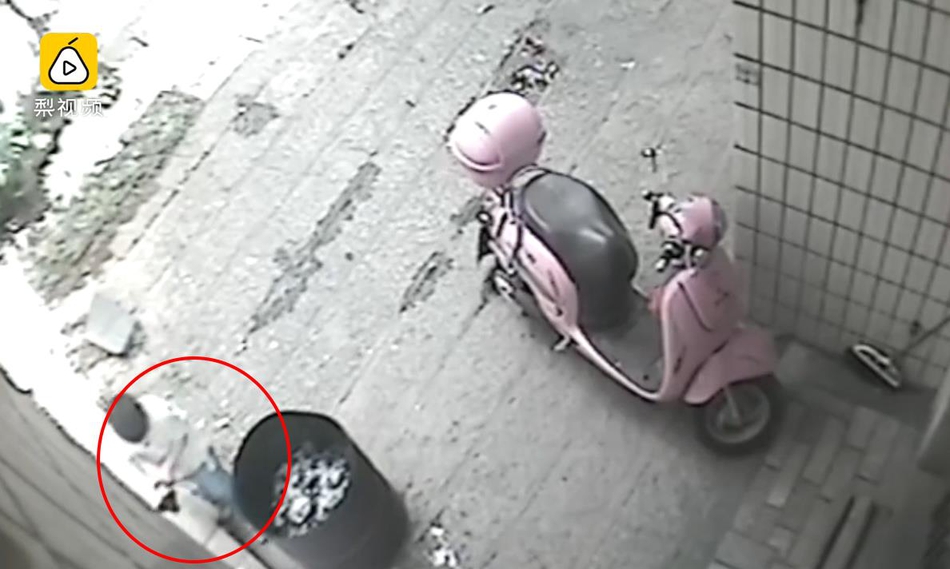 男童扔完后離開現場。