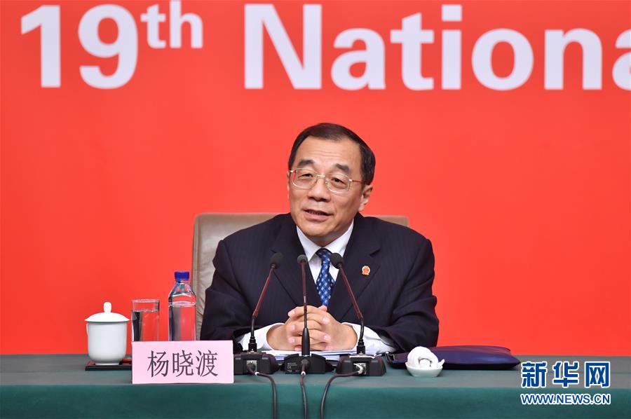 10月19日,中國共產黨第十九次全國代表大會新聞中心舉行記者招待會,請中共中央紀律檢查委員會副書記、監察部部長、國家預防腐敗局局長楊曉渡,中共中央組織部副部長齊玉介紹加強黨建工作和全面從嚴治黨情況,并回答記者提問。新華社記者 李鑫 攝