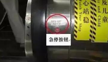 萬一乘坐電梯出事,你必須了解無論上的方向還是下的方向,手扶電梯的一側下方都有一個紅色的緊急停止按鈕。