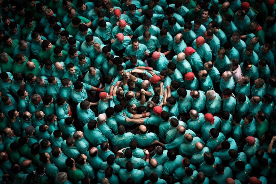 圖為《人性》這張照片是由大衛( David Oliete)拍攝的西班牙加泰羅尼亞節日時人們搭建人塔的場景,該作品受到評委的高度贊賞。圖片來源:環球網